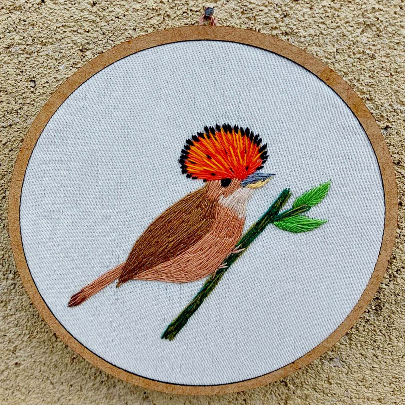 BORDADO A MÃO EM BASTIDOR - MARIA-LEQUE-DO-SUDESTE - PÁSSAROS CAPARAÓ