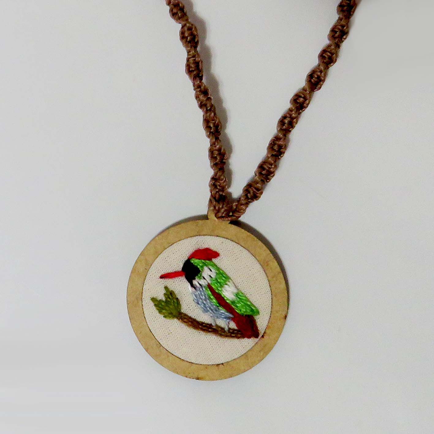 Topetinho-vermelho - pingente bordado Pássaros Caparaó cordão macramê